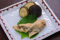 1 しいたけは石付きをとる。 にんじんは4cm長さの細切りにする。 きぬさやはへたと筋をとる。 2 しいたけと油揚げは、グリルで焼き、細切りにする。 にんじんときぬさやは、 それぞれふんわりラップで包み、 電子レンジにで約30秒加熱し、 裏返してさらに30秒ほど加熱し、冷水にとる。 さめたら水けをきる。きぬさやは斜め細切りにする。 3 あえごろもを作る。 ごまはフライパンなどでカラッといり、 すりばちにとってペースト状になるまでよくする。 砂糖を加え、よくすり、しょうゆを加えてすり混ぜる。 酒粕は耐熱容器に入れ、 ラップをせずに電子レンジで5〜10秒ほど加熱して やわらかくし、すりばちに入れてなめらかに混ぜる。 だしを少量ずつ加える。 4 あえごろもに、しいたけ、油揚げ、 にんじん、きぬさやを加えてあえる。 ※具は好みのもので。 焼いたきのこと、きゅうり、 いんげんを組み合わせたり、 ゆでたグリーンアスパラガスなどを具にしても。 ※あえごろものだしを1/2〜2/3カップに増やせば、 うどんのつけだれにもぴったり。 ■鶏ささ身のはさみ焼き 用意するもの(2人分):