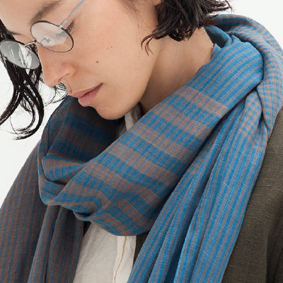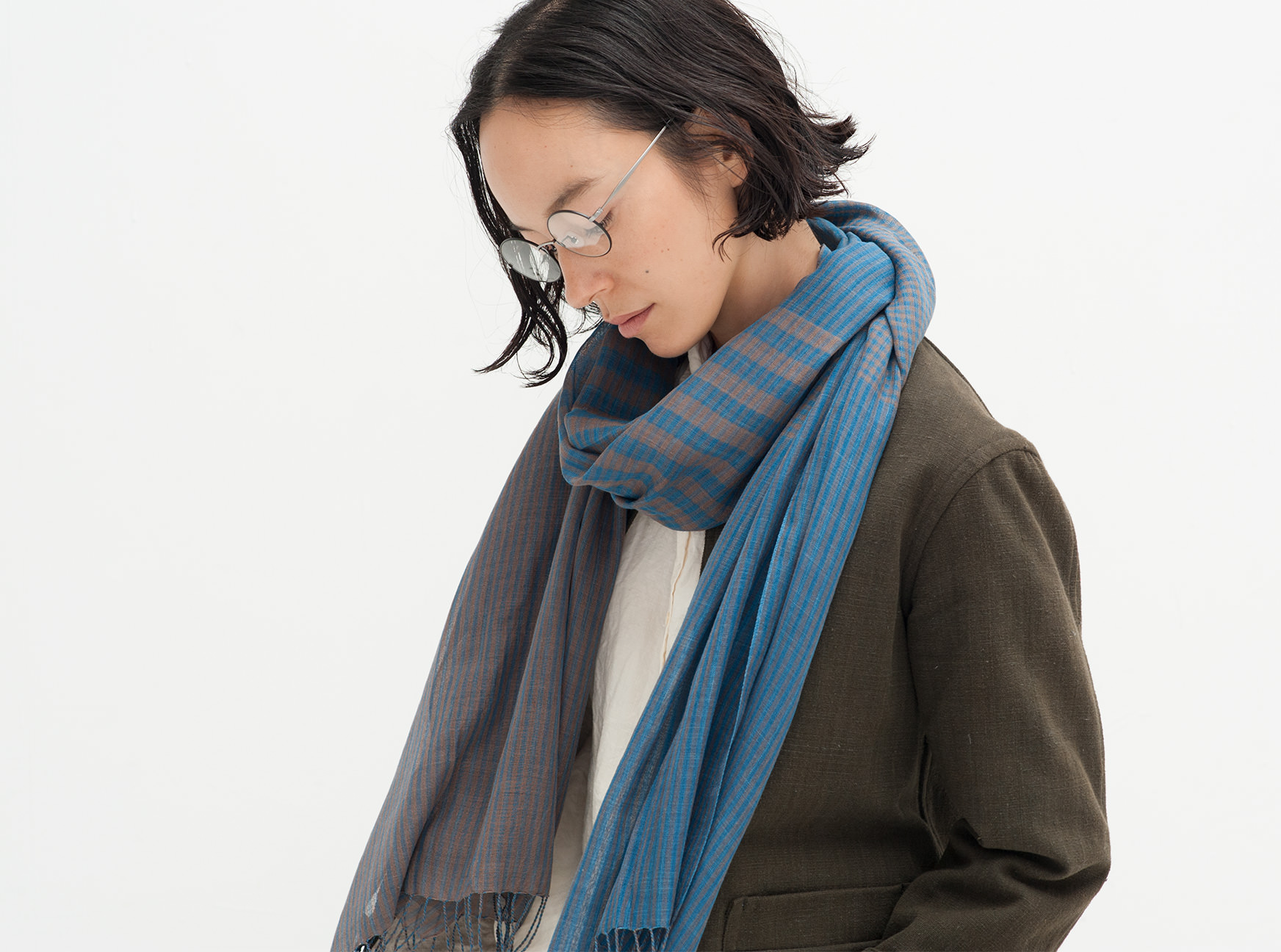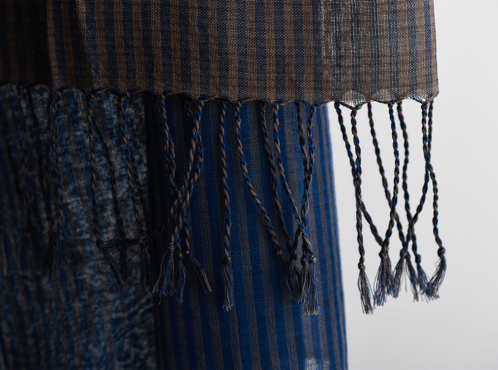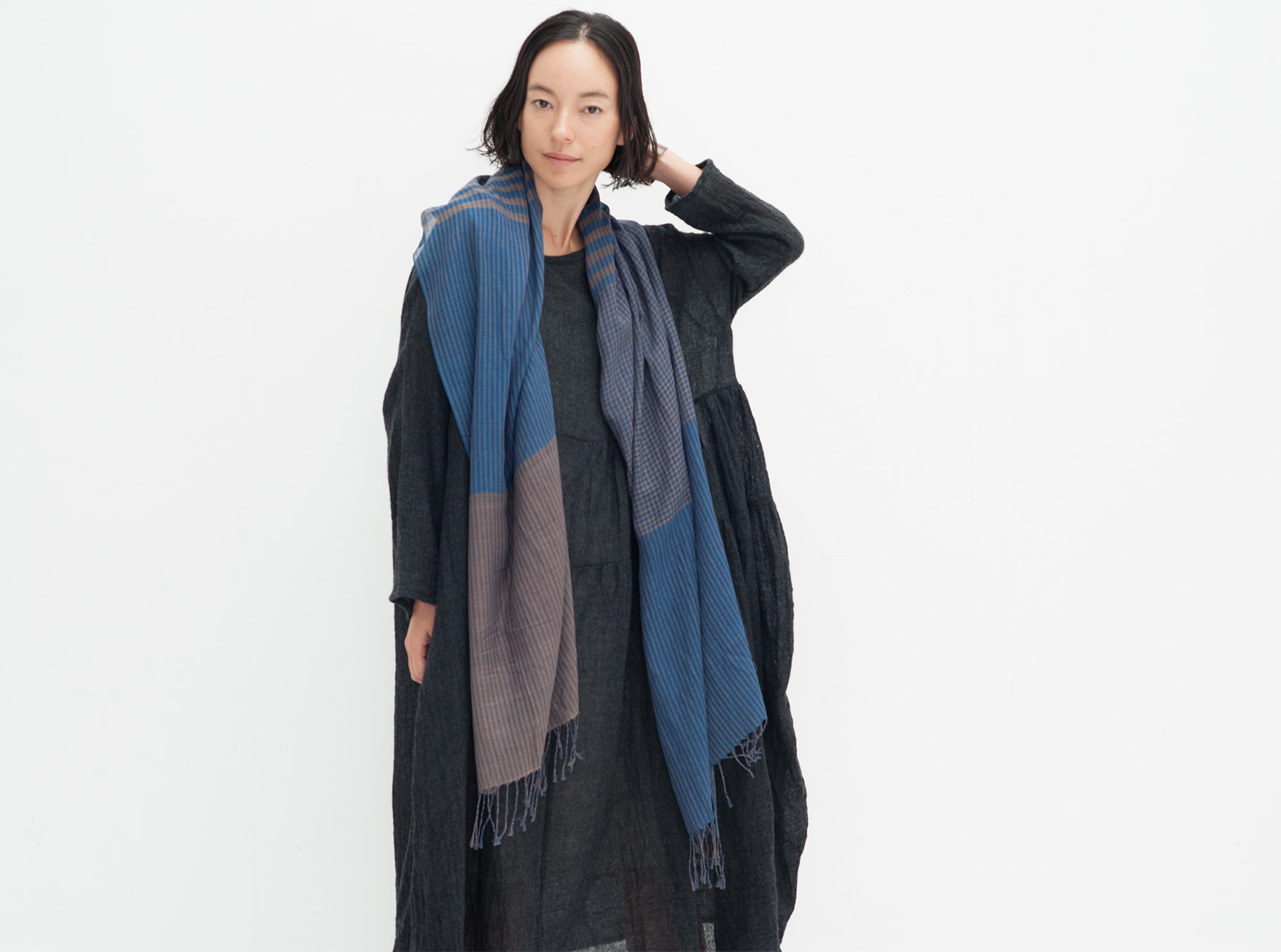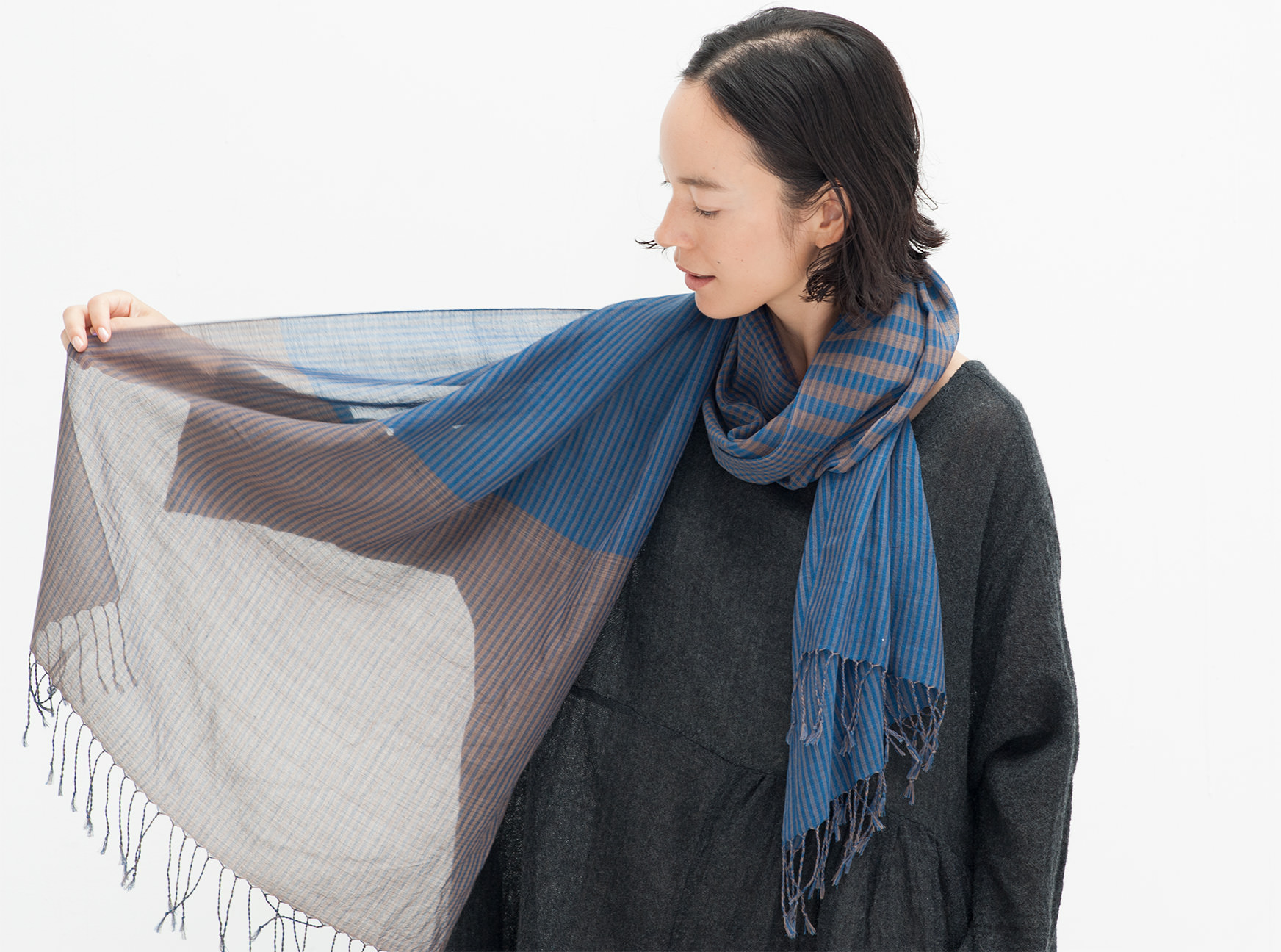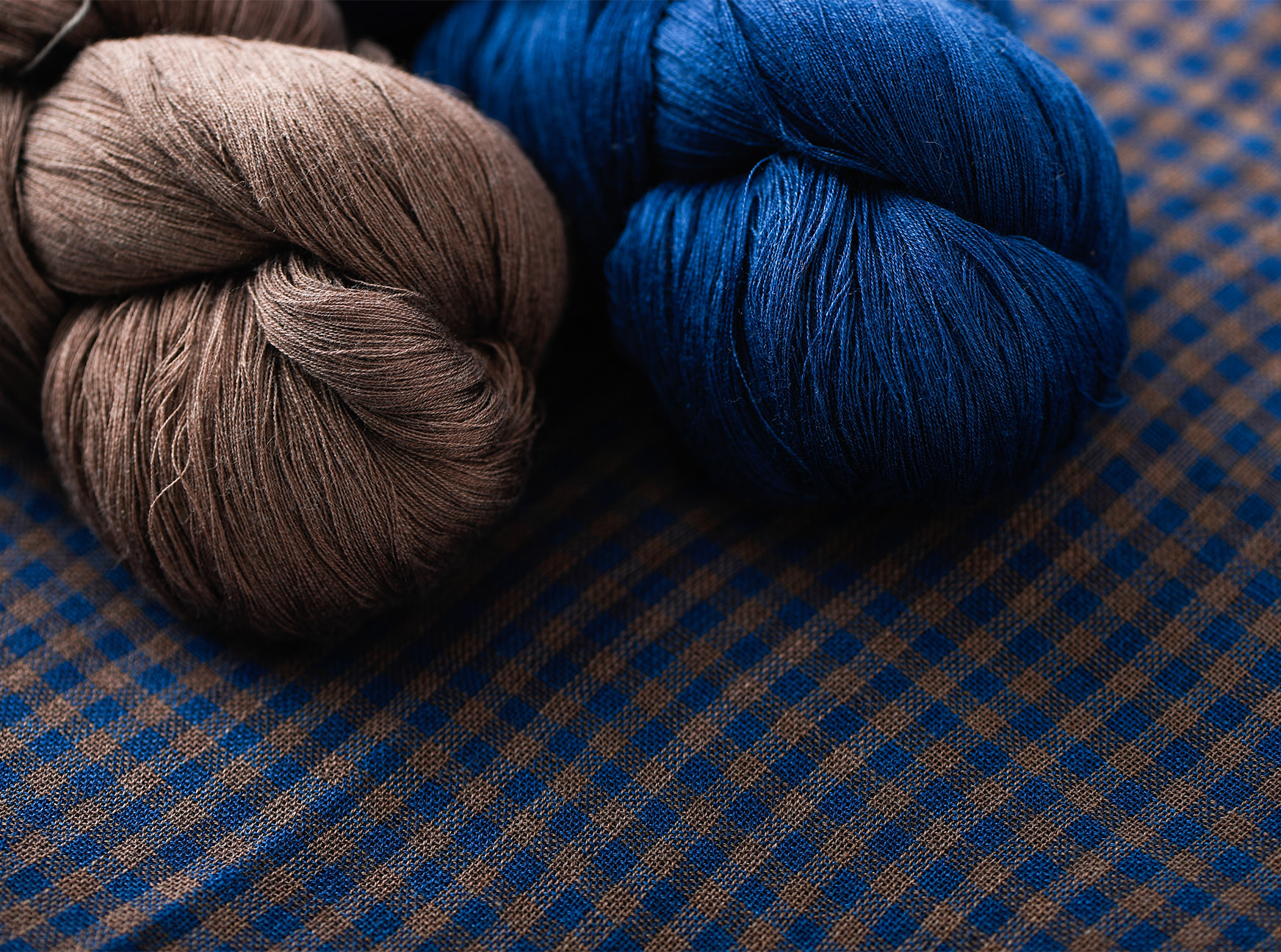 染めた綛(かせ)により出た色のばらつきをいかして、