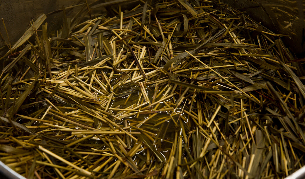 この「若草」の深い緑は、刈安と藍をかけたものです。