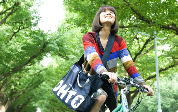 お財布、ケータイ、タオルなどをぽんと入れて、 「くまのお届けバッグ」を肩にかけたら、 自転車にまたがって、さっそうと出かけましょう。