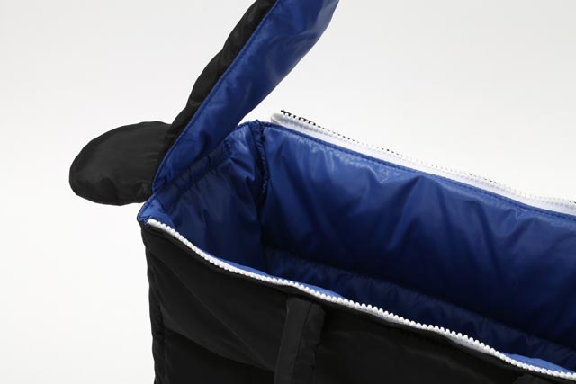 バッグの口をしめるための、ジッパーがついています。洋服みたいにとめるタイプですから、ジッパーをあけて使うこともできます。