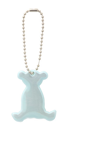 「くまのリュックさん。」「こぐまのポシェットさん。」の ミント色に合わせた、新色です。 おすわりKUKKAのかたちをしたリフレクター。 いもうとだけに、3つのリフレクターのうち、 いちばんちいさいサイズです。