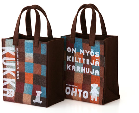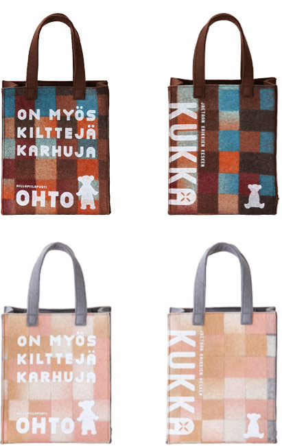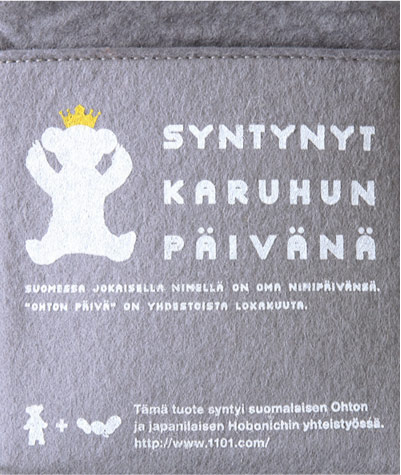 | 「すごいフェルトのこぐまバッグ」は 10月11日の「OHTOの日」にリリースされる、 とくべつなアイテムとしてつくられました。 その証は、内ポケットにあり! 「王冠をかぶったくま」が、バンザイしてます。 なんだかよくわからないけど、ちょっと豪華でしょう? 「くまの日に、うまれたよ」 というフィンランド語も、添えられていますよ。 |