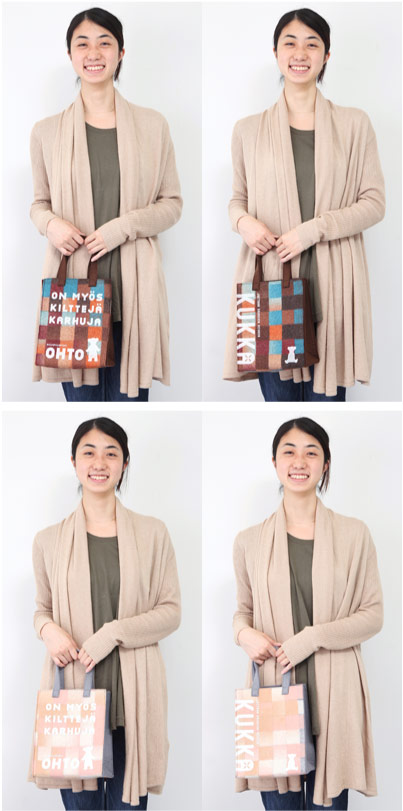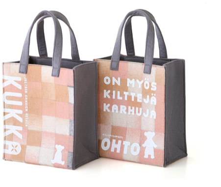 「OHTOの日」に発売するニューアイテムのひとつは、 フェルトの「こぐまバッグ」です。 フェルトといっても、ただのフェルトではありません。 いままで誰も見たことのない、 世界初の「すごいフェルト」です。 このフェルトを使って、 4種類の「こぐまバッグ」をつくりました。 |