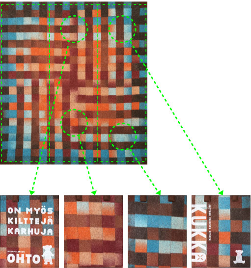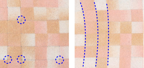 また、編まれてできたモザイクもようも、製法の都合上、 |