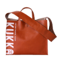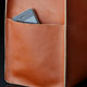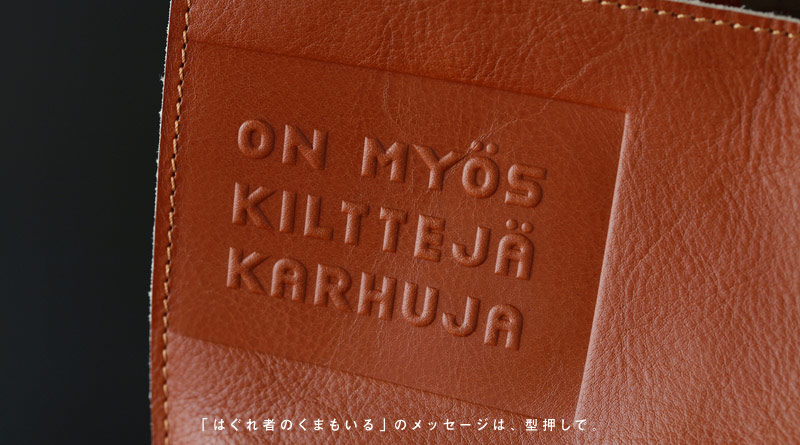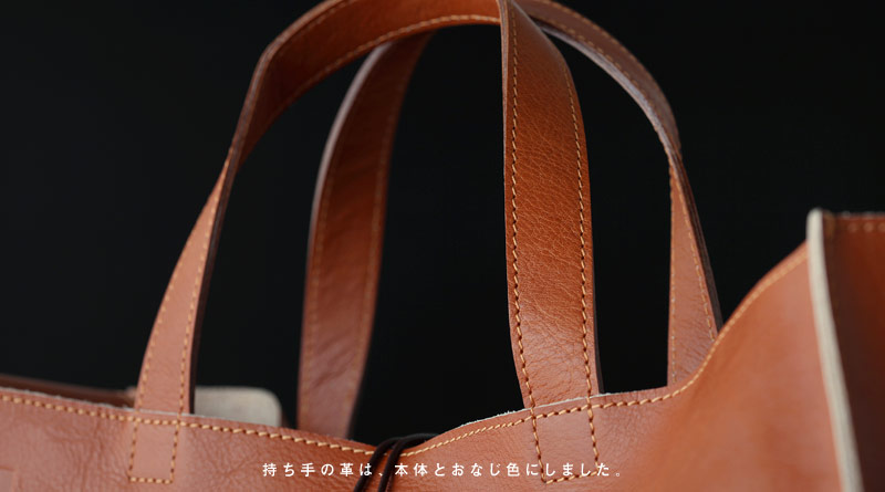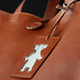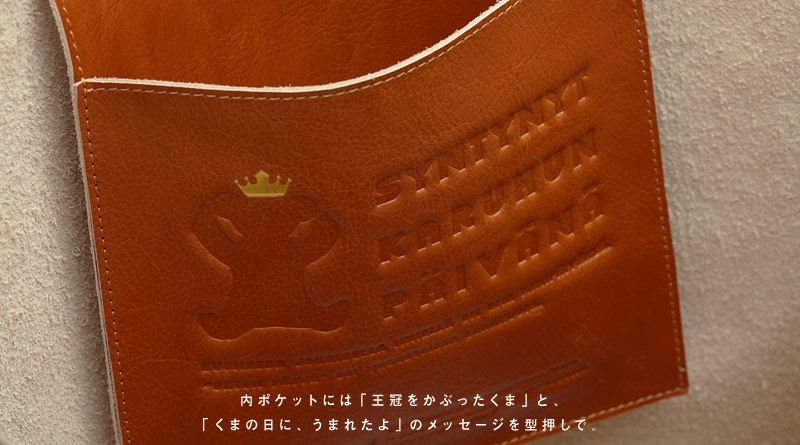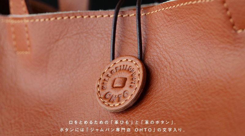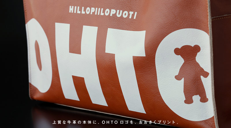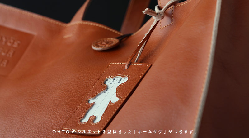 「くまのお届けバッグ」を、そのまま革でつくりました。 マットな質感の、飴色(ライトブラウン)の革を使って、 前面、背面ともに一枚革で仕立てた、 ぜいたくなお届けバッグです。 OHTOのシルエットを型抜きした、 ネームタグがついてきます。