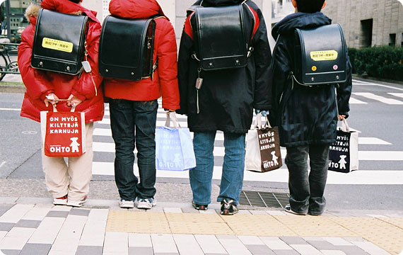 「こぐまの紙ぶくろ」は、お弁当や、上履き、体操着など、 学校にもっていくものを入れるサブバッグとしても、 ぴったりの大きさです。 実際に小学生たちに訊いてみると、 「DSの本体とソフト一式を入れるのに、 ぴったりかも!」なんて意見も。 小学生のお子さんが持つのに、ちょうどいい大きさなので、 他にも、いろいろ使いかたを見つけてみてくださいね。