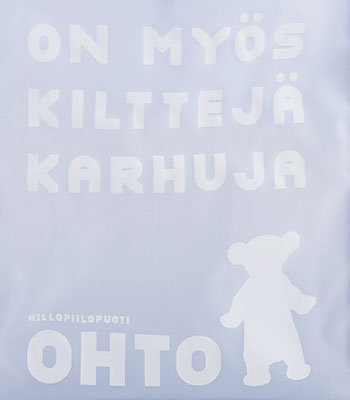 「おおきなくまの紙ぶくろ」の アイスブルーと同じ色です。 ほかの3色は、文字色の白、側面のアイボリーと つよいコントラストをつくっていて、 それが特長なのですが、 このアイスブルーは、白やアイボリーと、 やわらかく溶けあっていて、 全体に、やさしい感じの配色です。