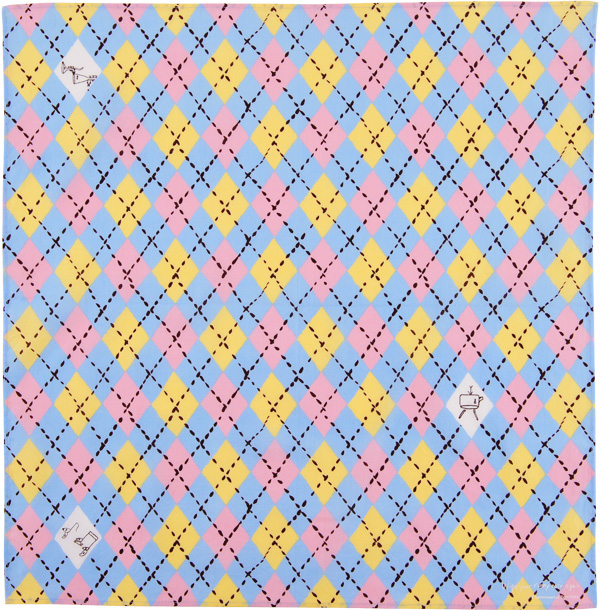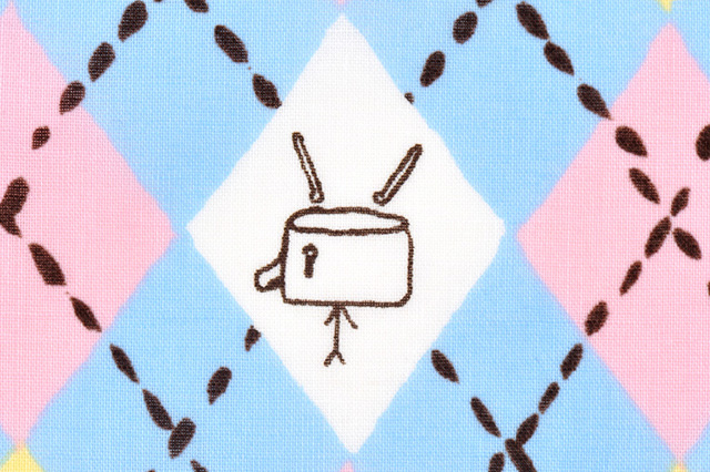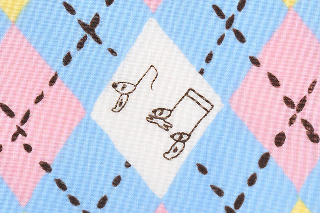 そして、さがしてみると、やっぱりいました。 音符や太鼓やラッパのような住人が そしらぬ顔で、ダイヤ柄のなかにかくれています。
