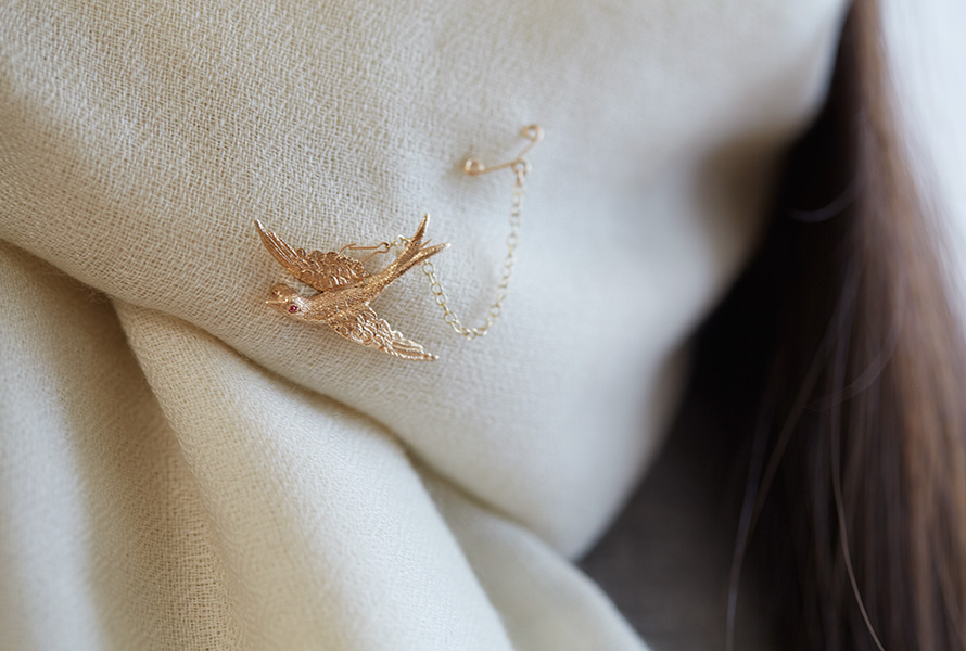 監修は、イセキアヤコさん。 ヴィクトリア時代のデザインを 現代に蘇らせた、 復刻版のブローチを販売します。 ゴールド、プラチナ、シルバーと 高級な素材を用い、 ロンドンの熟練した職人の手作業で ひとつずつ仕上げられた クオリティ高い品です。 名前は、「小鳥のブローチ」。 長く長く愛され、輝き続ける ブローチに育っていくことでしょう。 そう‥‥ 100年後にも、誰かの胸で。