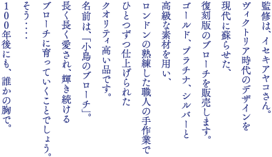 「小鳥のブローチ」は、数量限定販売です。