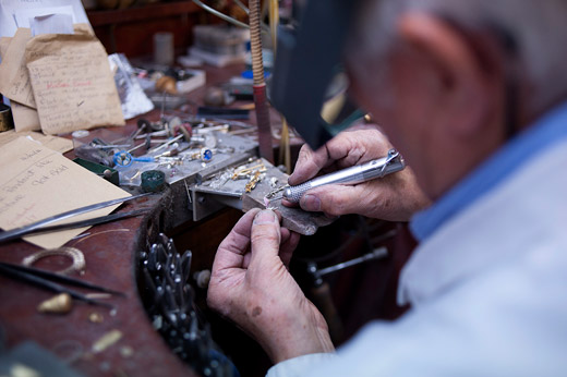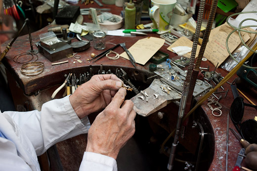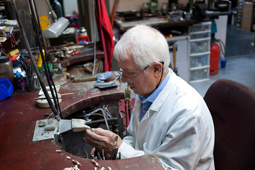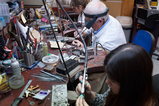 | イセキ | そうですね。 ライオネルさんはその一角に工房を持っている方で、 ある日、知人から紹介されたんです。 以前から私は、 アンティークのリプロダクション・ブローチを イギリスで作ってみたいと思っていたので これはぜひ、会いにいかねば、と。 |