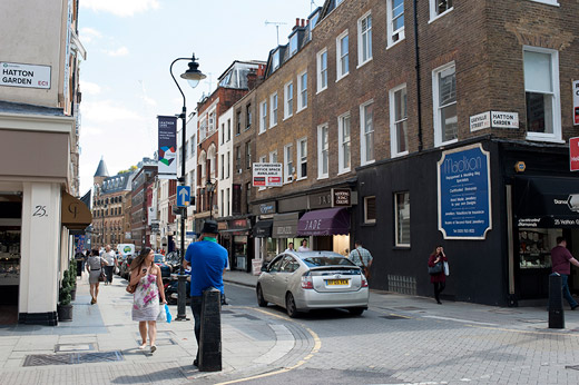 | イセキ | ハットン・ガーデンという、 イギリスでいちばん有名な 宝石商とジュエリー工房が密集した通りです。 |