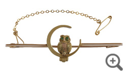 素材は9カラットの金、目の部分はグリーンエナメル。