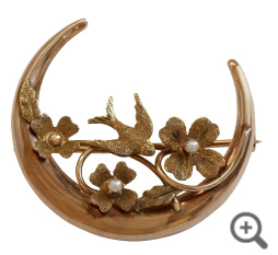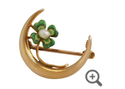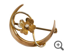 1890年代から1910年代ごろまで流行した、 平均して直径2〜3cmの小さな三日月のブローチ。 夫が結婚したばかりの伴侶へ贈る特別なジュエリーで 「ハネムーン・ピン」と呼ばれました。 |