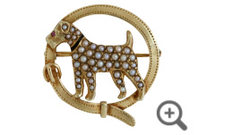 素材は、14カラットの金に、犬の瞳はルビー、