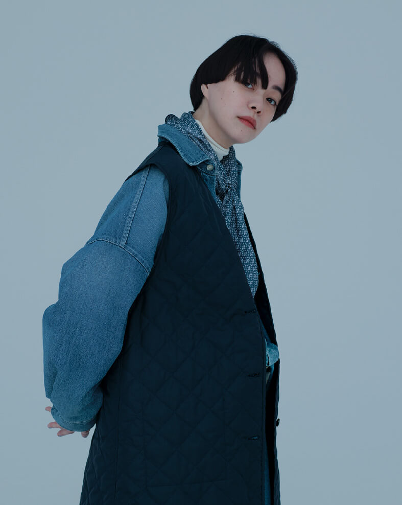 ロングベストと重ね着したときに、