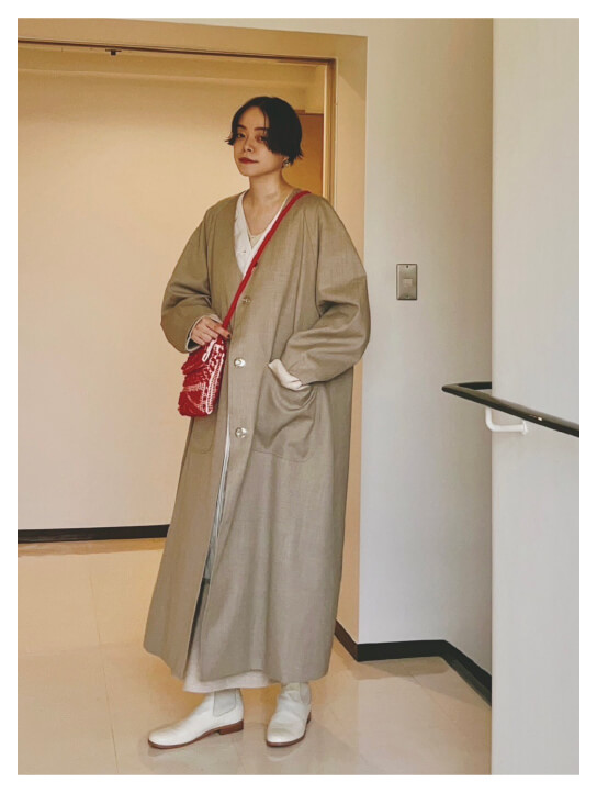 特に杢ベージュのマキシコートは、