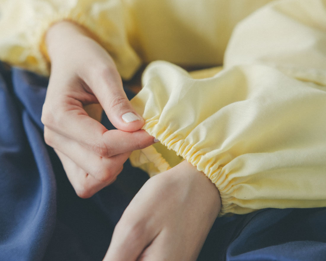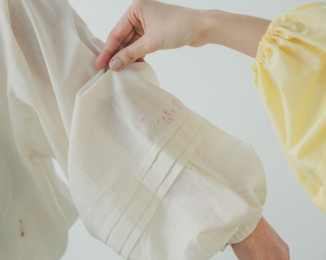 普通はミシンを1本入れてギュッと寄せるんですけど、