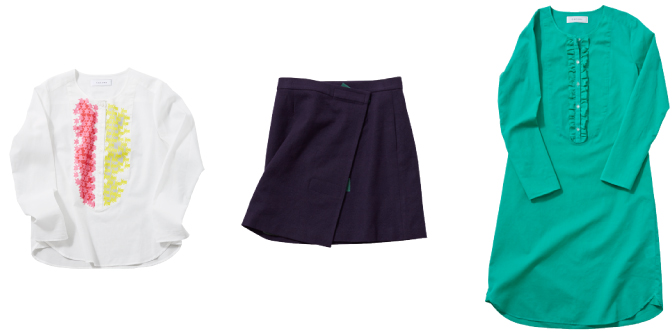 「フリルのブラウス」「ウールの巻きスカート」「フリルのワンピース」