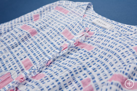 青と白、そこへピンク。