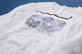 インクジェットと刺しゅうで表現しています。