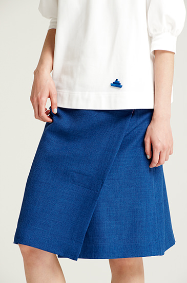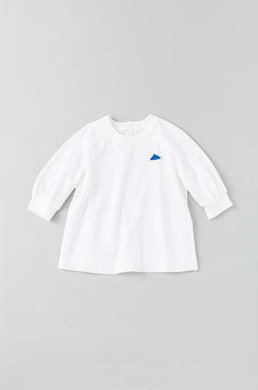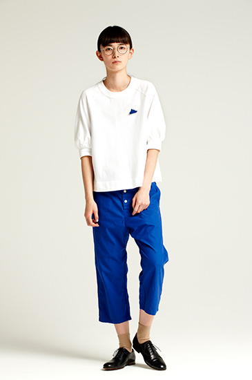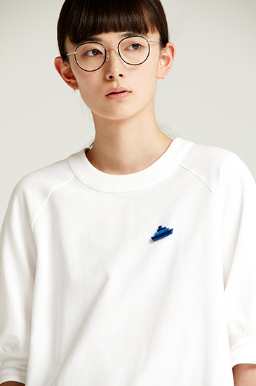 胸元に映える真っ青なワンポイントは
