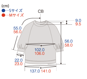 「襟ぐりや提灯袖のリブなども