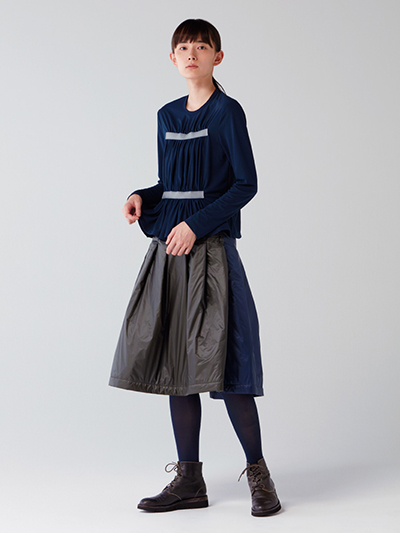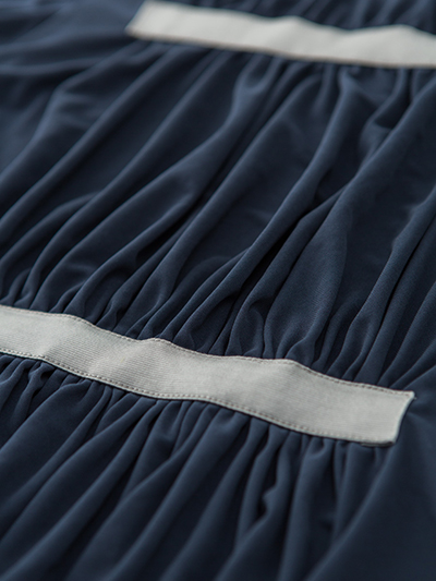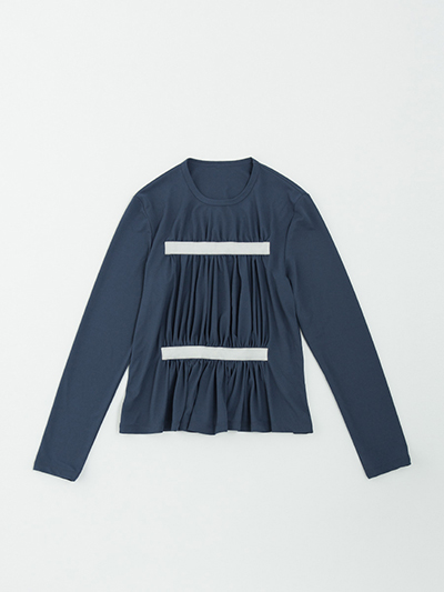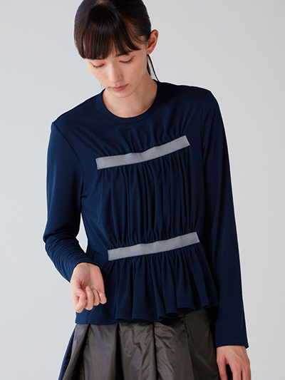 前身ごろに、大胆にギャザーを寄せ、