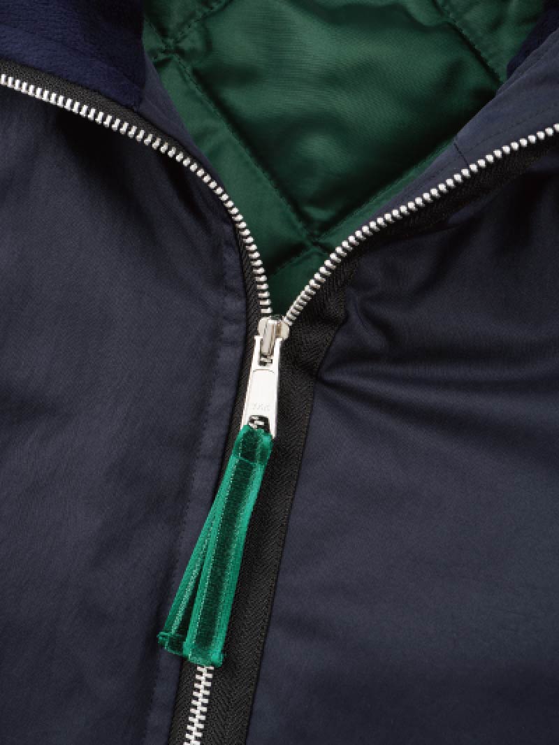 ジップの引き手には、グリーンのリボンがついています。