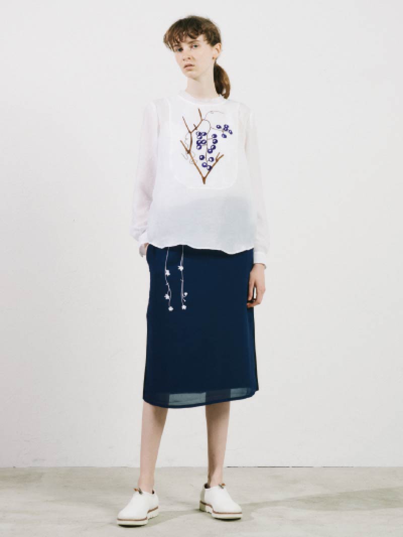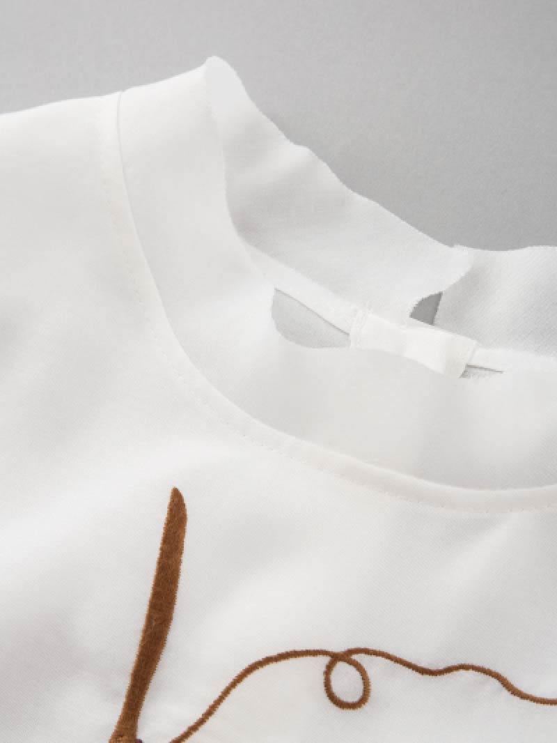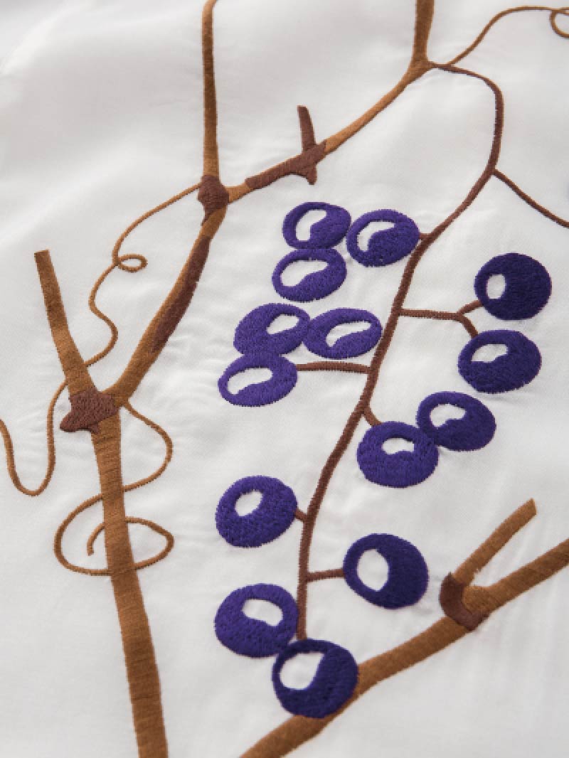 胸元の刺繍は秋らしい、