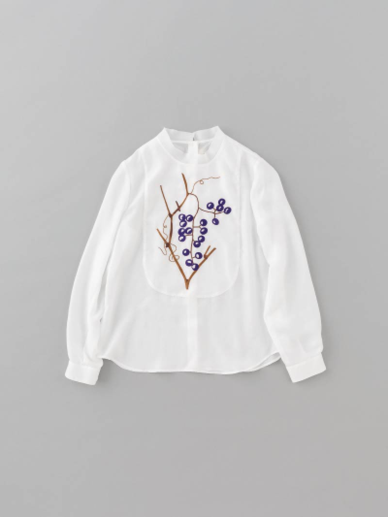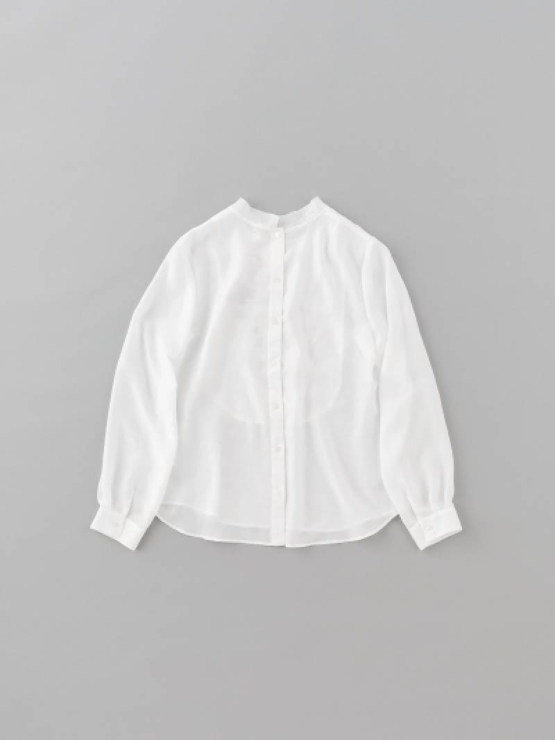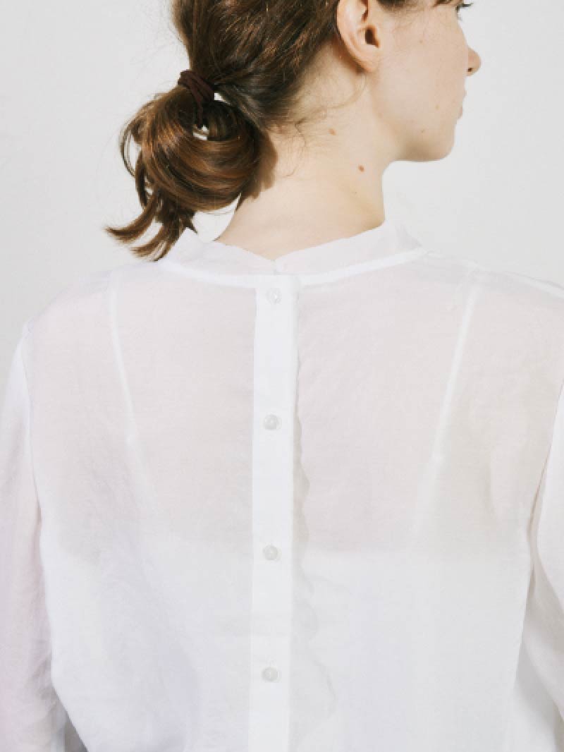 華奢な生地が作りだす、やわらかな立ち襟は
