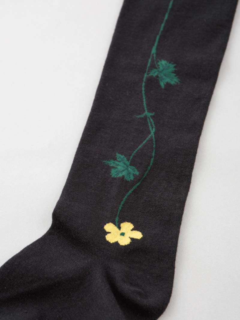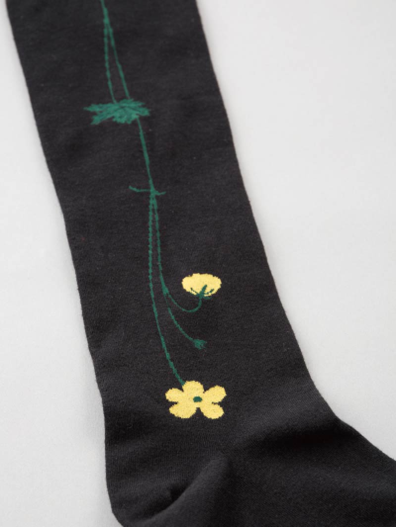 野の花の刺繍が、黒地に黄色で入っています。