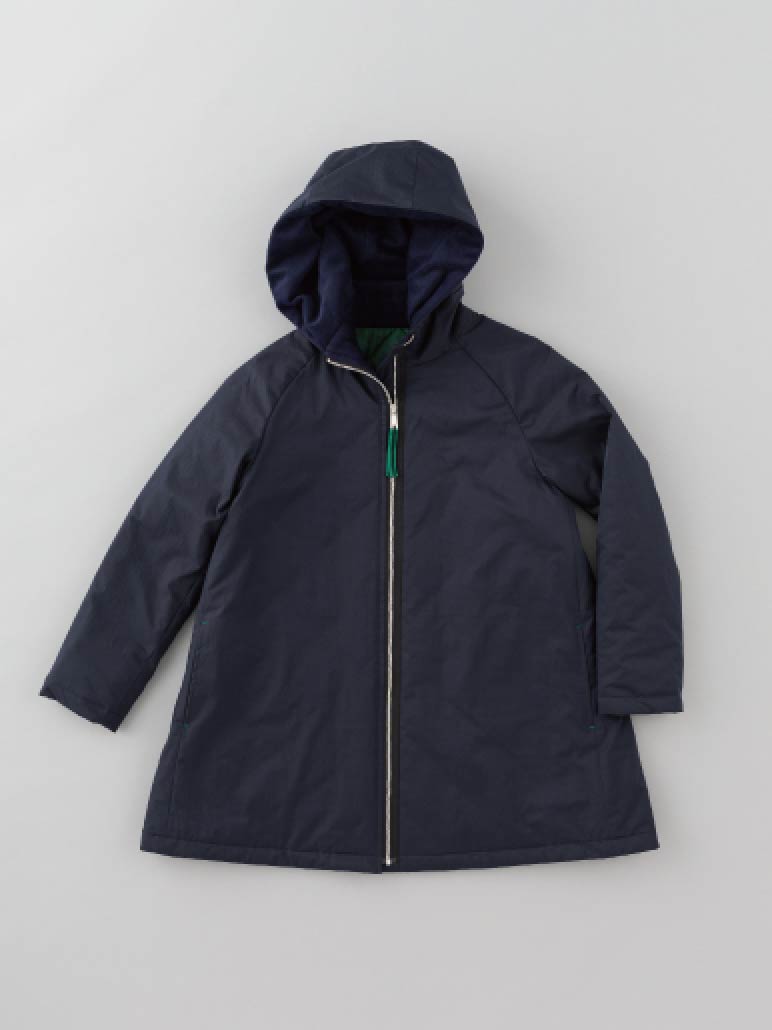 シンプルなネイビーのコートですが、