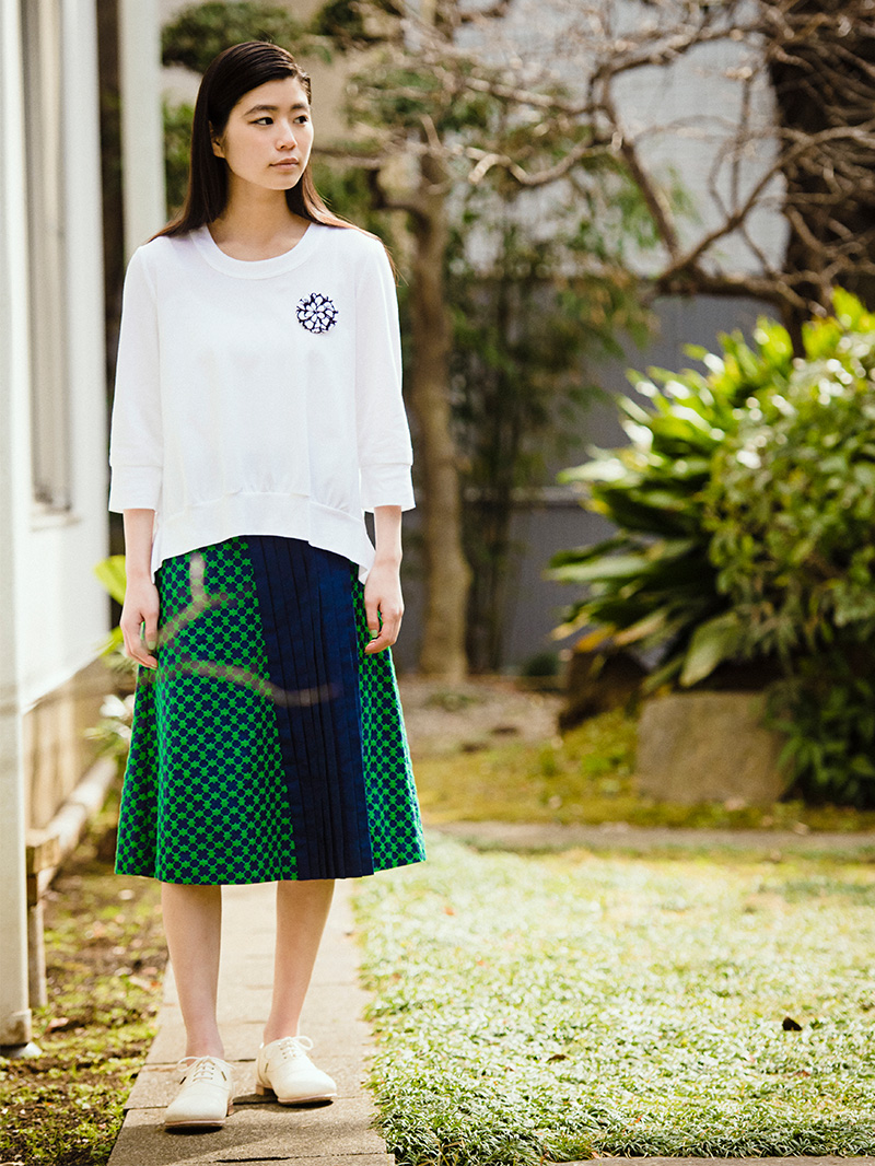 鮮やかなグリーンの刺繍との