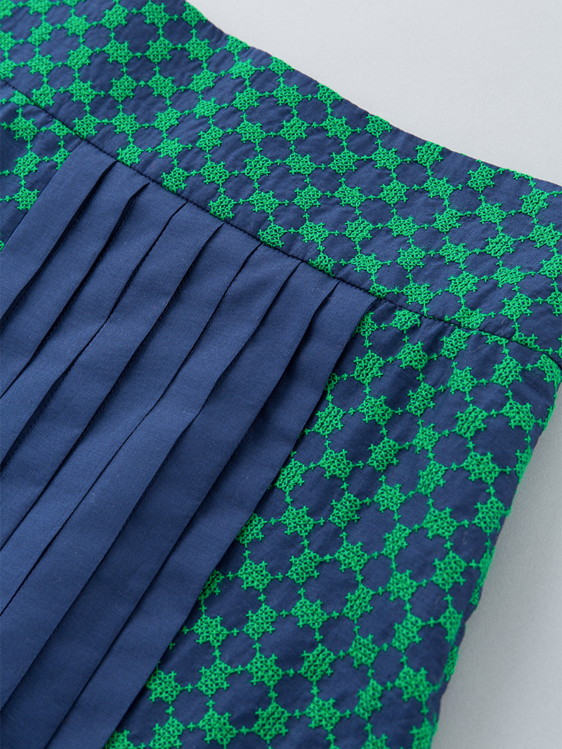 生地:ネイビー/刺繍部分:グリーン