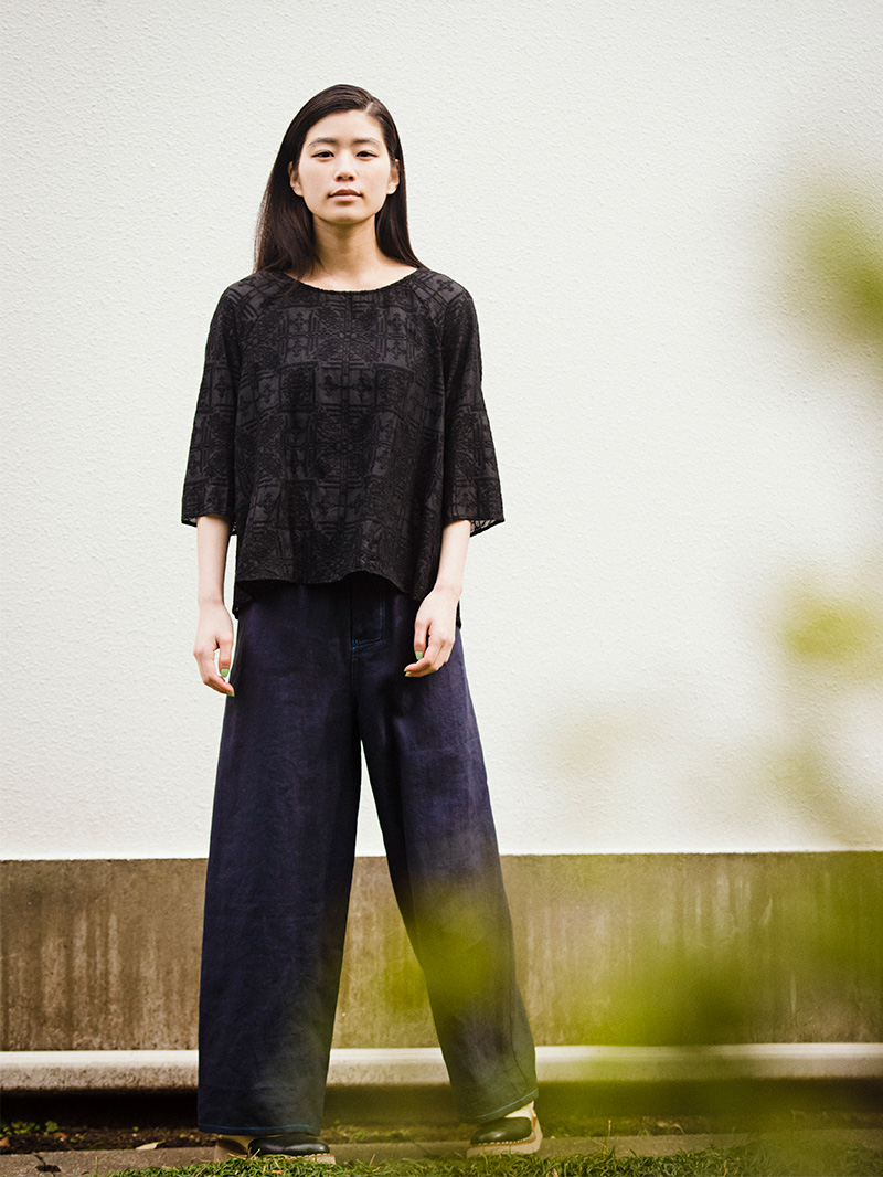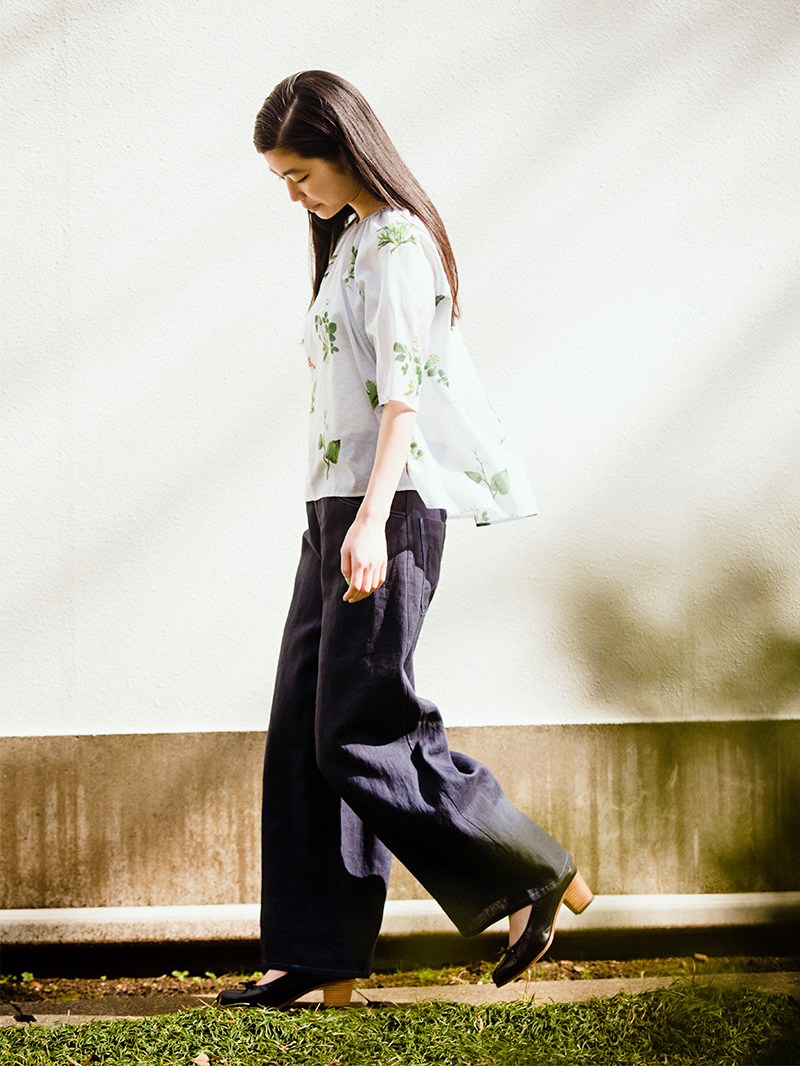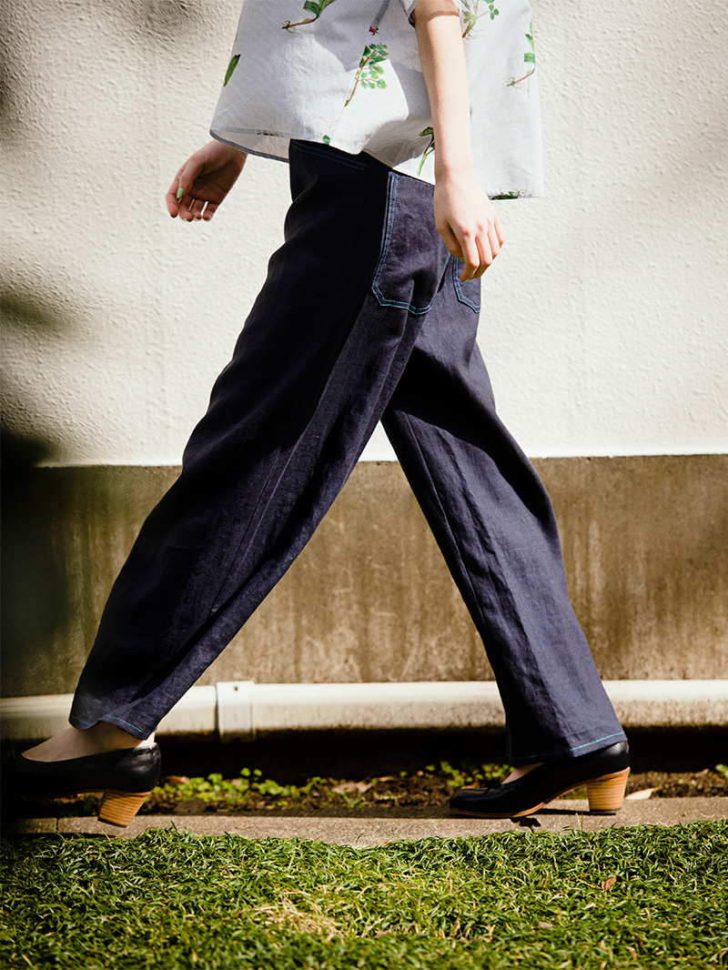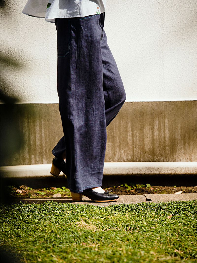 ゆったりシルエットのパンツ。