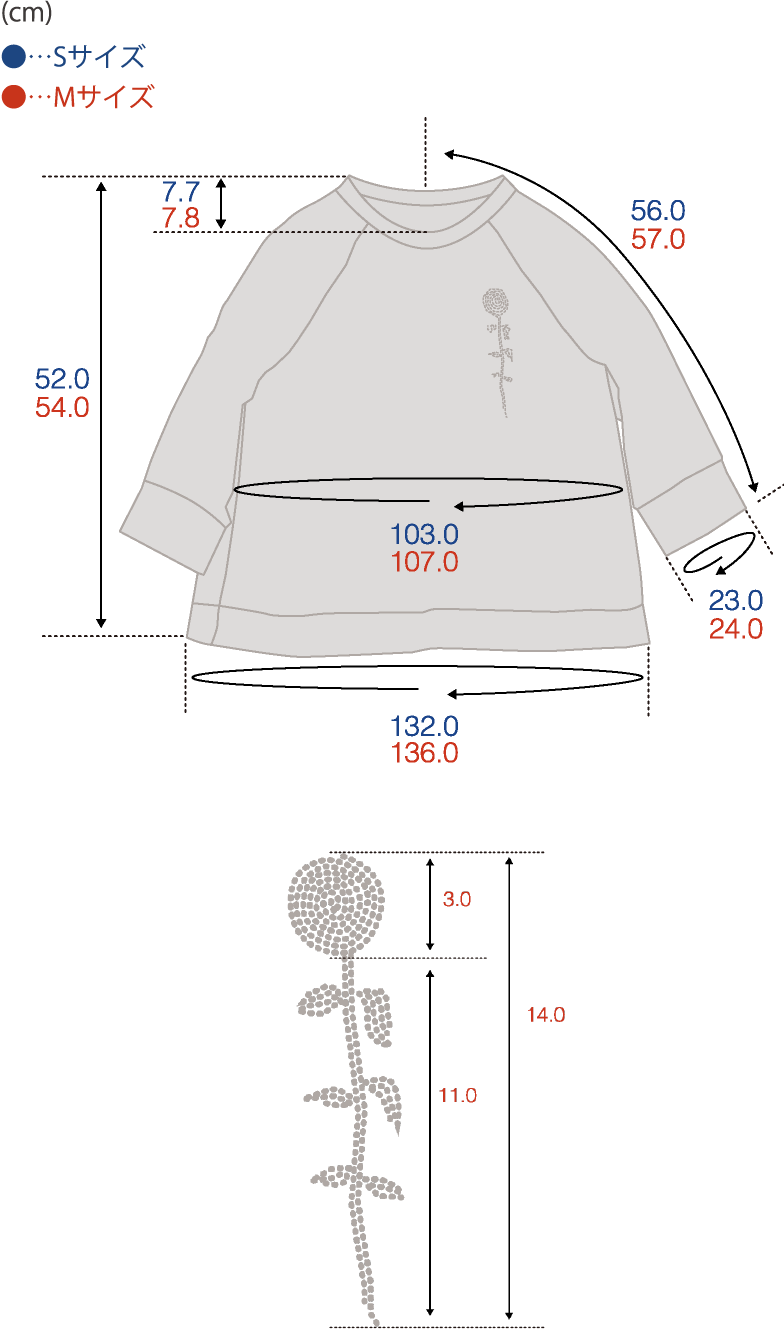 表情豊かなお花のワッペンが付きます。