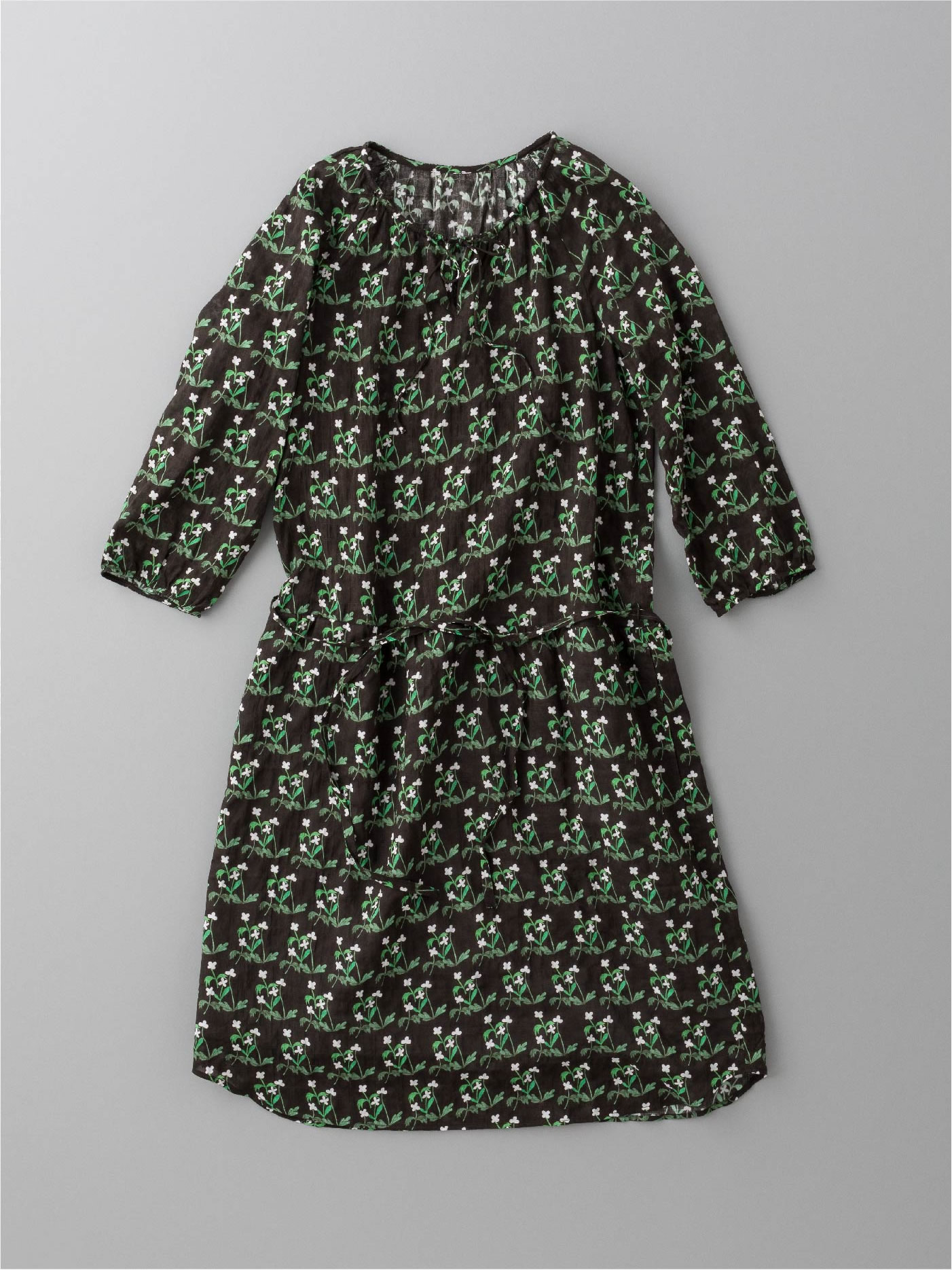 付属する共布(ともぬの)のリボンでウエストをしぼって着ても、