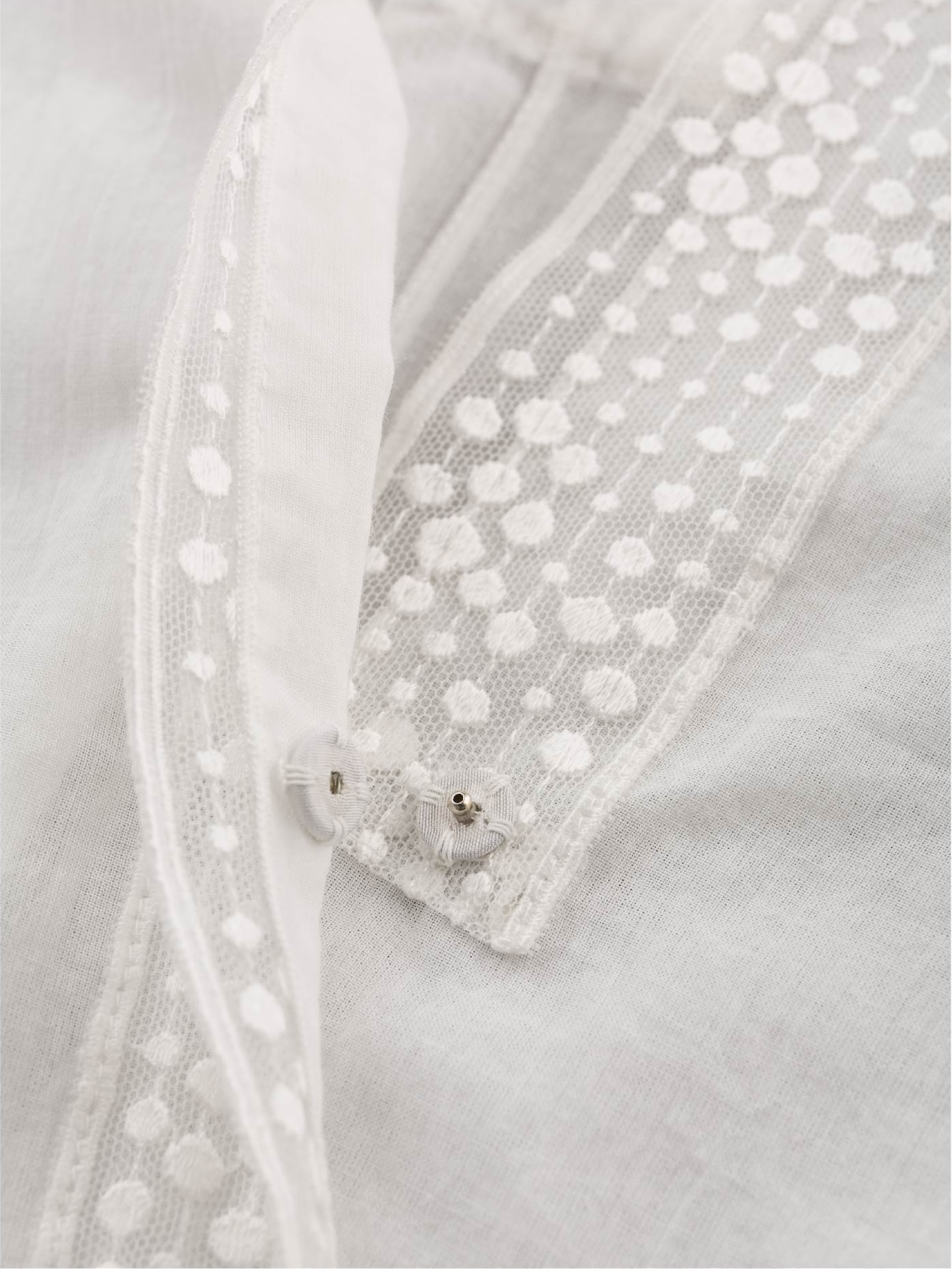 前身頃から背中まであしらわれた繊細なレースリボンは、