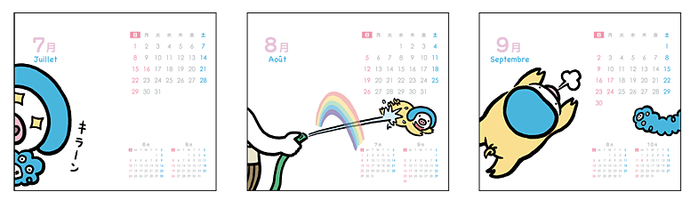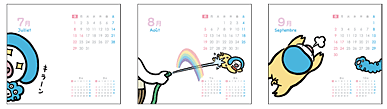その月のカレンダーと前月と次月のミニカレンダーが載っていて、