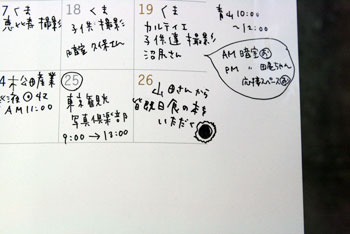 予定以外に、余白に伝言などを書いています」