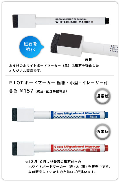 ※ほぼ日オリジナル磁石強化型ホワイトボードマーカー(赤)と(青)は