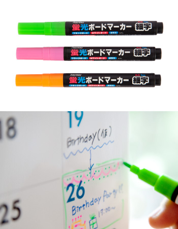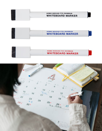 もともとは、ほぼ日手帳のオプションとして、 文具と雑貨のお店「TOOLS&TOYS」で 扱っていたのですが、 カレンダーに貼って使っても楽しいので ご用意することにしました。 このシールは紙でできているため、 ホワイトボードマーカーで書き込むと消えづらいので、 お気をつけください。 書いてしまった文字を消したい場合には ティッシや柔らかい布を水で濡らして、 水拭きしてください。
