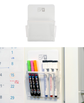 マーカーや小物、 絵葉書やチケットなどが収納できるポケットです。 裏面についたマグネットで、 金属面に貼りつけて使うことができるので、 冷蔵庫など カレンダーまわりの金属面に貼りつければ マグネットのついていないマーカーなどの収納に 便利です。 耐荷重は150g、官製はがき約50枚が入ります。 ボケットのサイズは 「幅113mm×高さ90mm」と十分なサイズ。