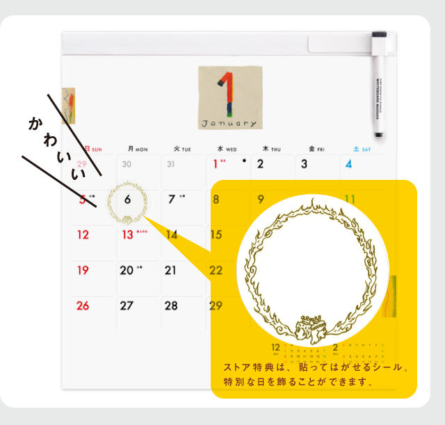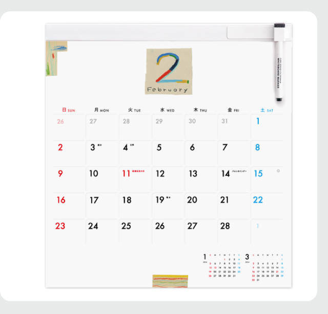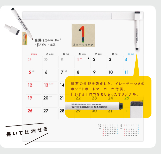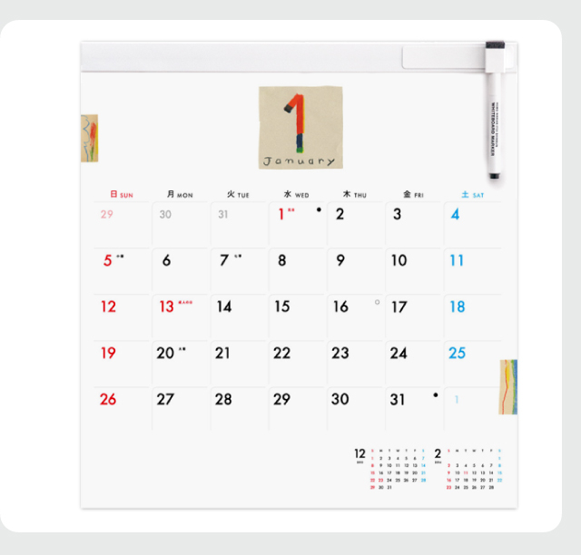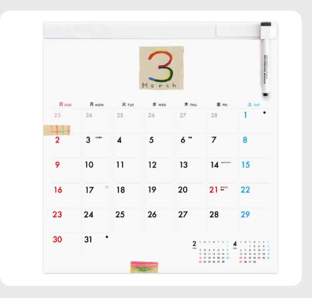 ほぼ日 オリジナル ホワイトボードマーカー(黒) ツールバー(白・100mm×20mm) 祝祭日 記念日など(バレンタインデー、ひなまつり、 母の日、父の日など) 二十四節気(立春、春分、夏至など) 月の満ち欠け 切り取り式(ミシン目で切り取って使う月を前面にします) 特許出願中【全面ホワイトボード仕様カレンダー】 |