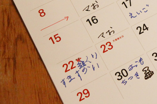 | 香さん | いえ、青が字をかけるようになってから このカレンダーを、我が家に導入したんです。 |