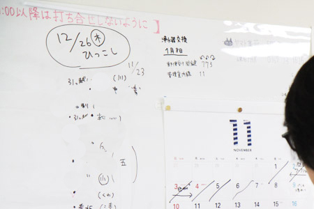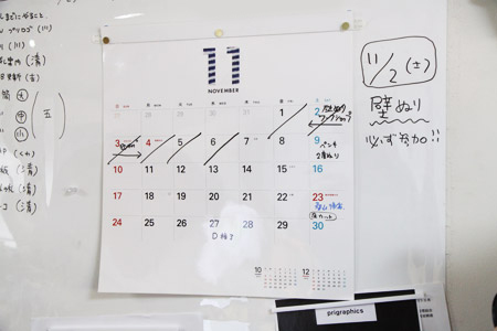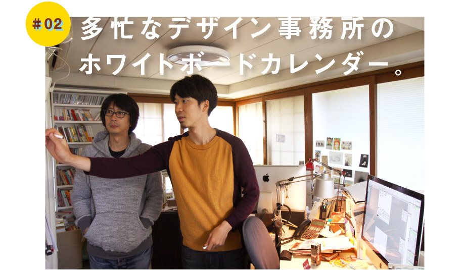 | ── | いえいえ、多忙なデザイン事務所という ある意味「質実剛健!」だけが求めらる場所で ぼくらのホワイトボードカレンダーが どう使われているのか、 本当に役に立っているのか、知りたかったので。 |