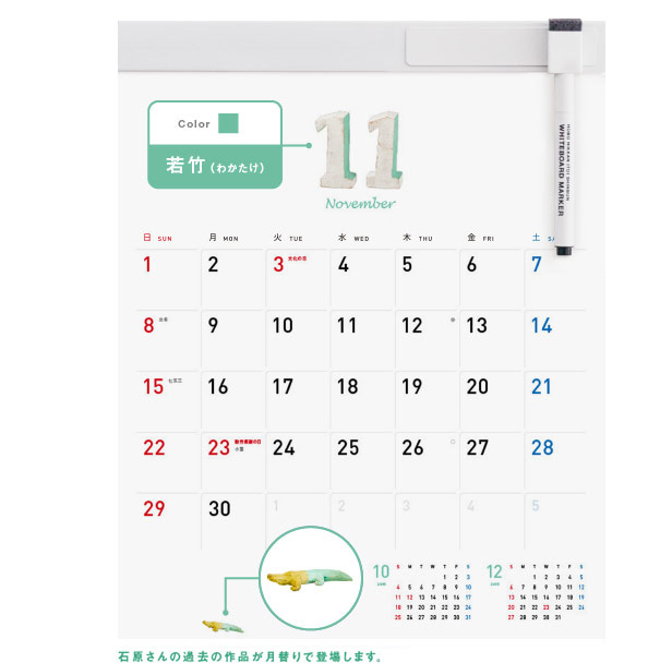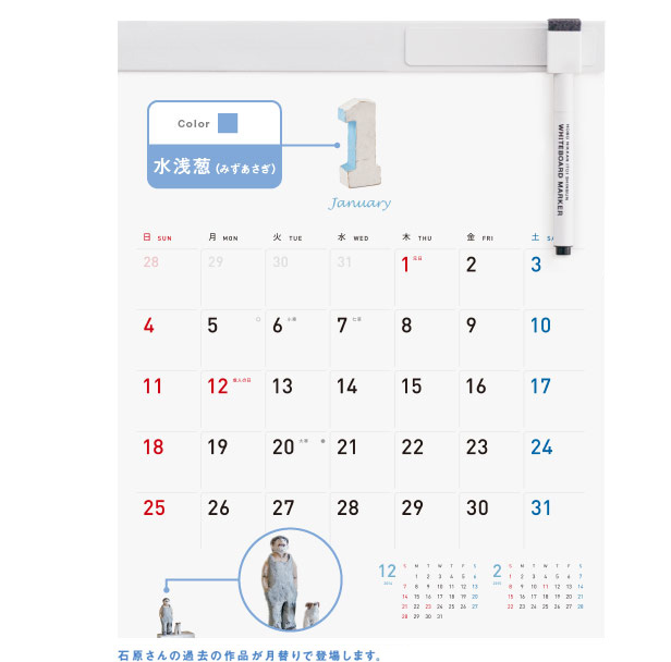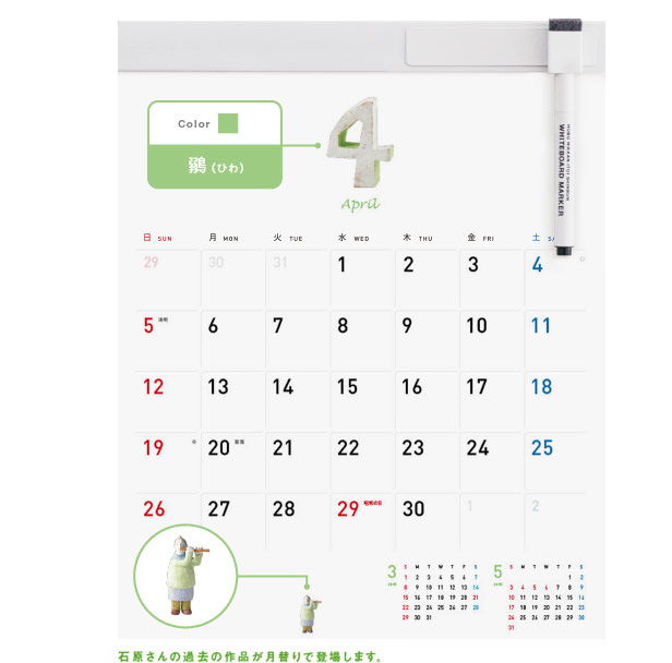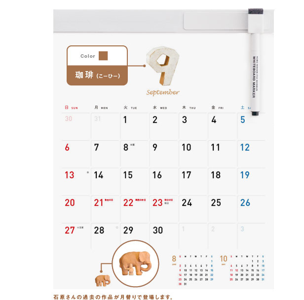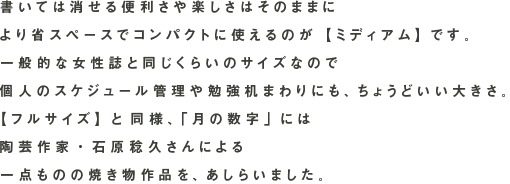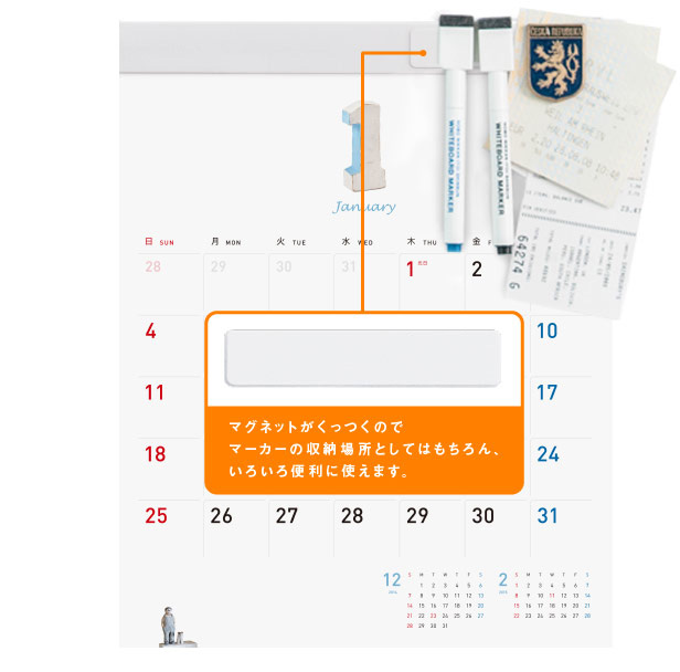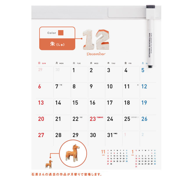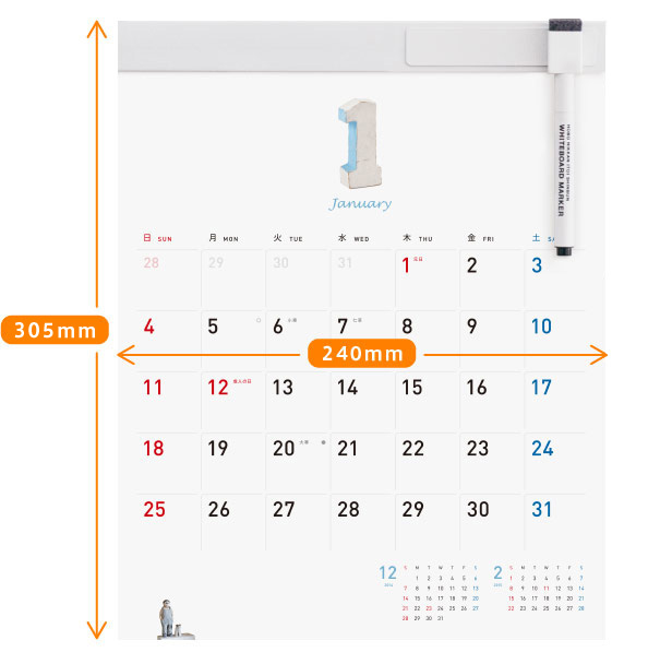 縦305mm×横240mm 【1マス(1日):幅31.5mm×高さ30mm】 12枚 約245グラム(本体のみ 約165グラム) 本体:コート紙にポリプロピレン表面加工 ホルダー:ポリ塩化ビニル ツールバー:ブリキ |