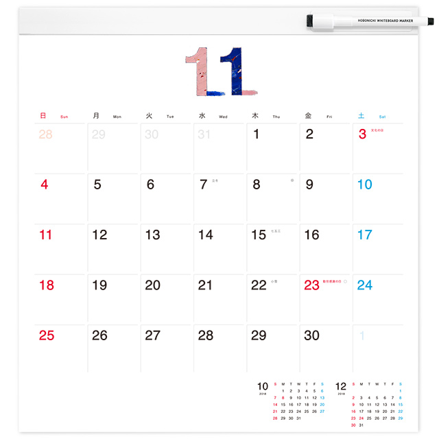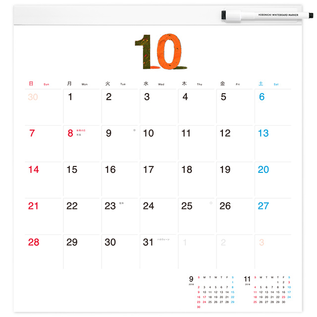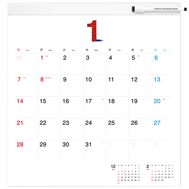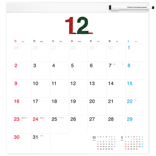 ほぼ日ホワイトボードカレンダー2018【フルサイズ】は、こんなカレンダーです。
